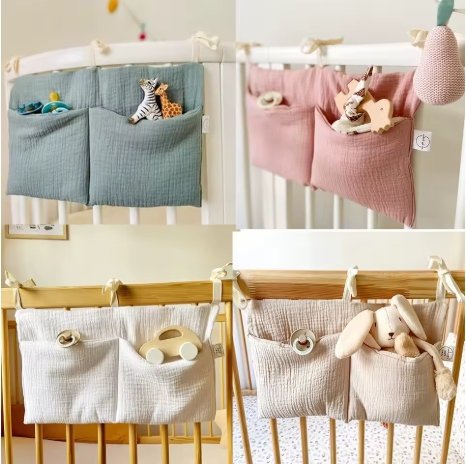 منظم سرير للطفل حقيبة التخزين 2 جيوب السرير معلقة